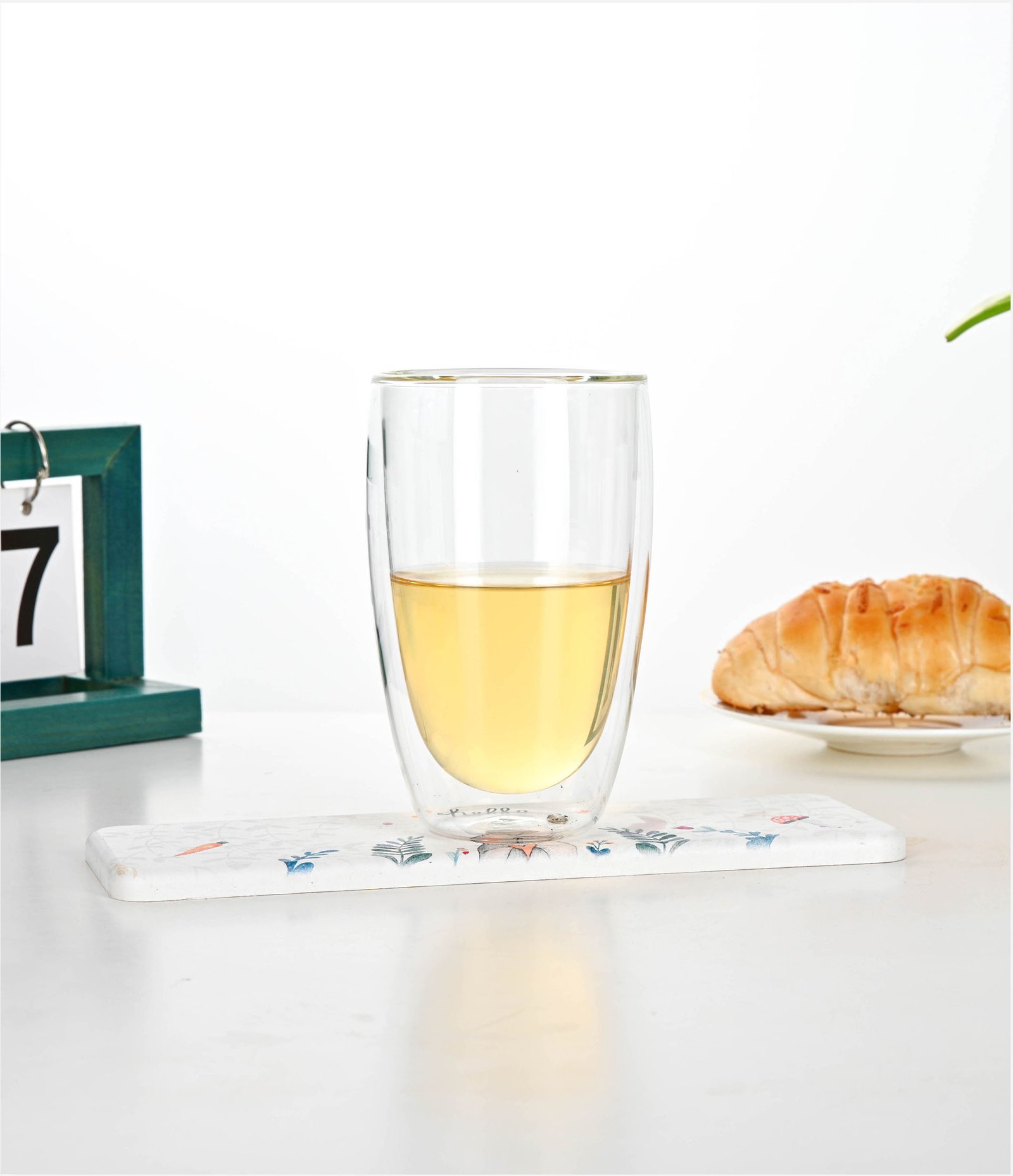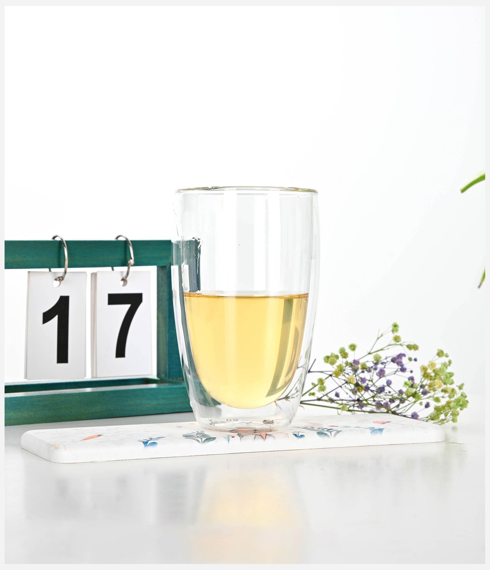 The glass design maintains the natural taste of the tea and allows for rich flavor components to flow through. Also, glass teaware cools water down more quickly than other teawares. It is suitable for enjoying the visual beauty of the tea leaves, especially Blooming Tea.